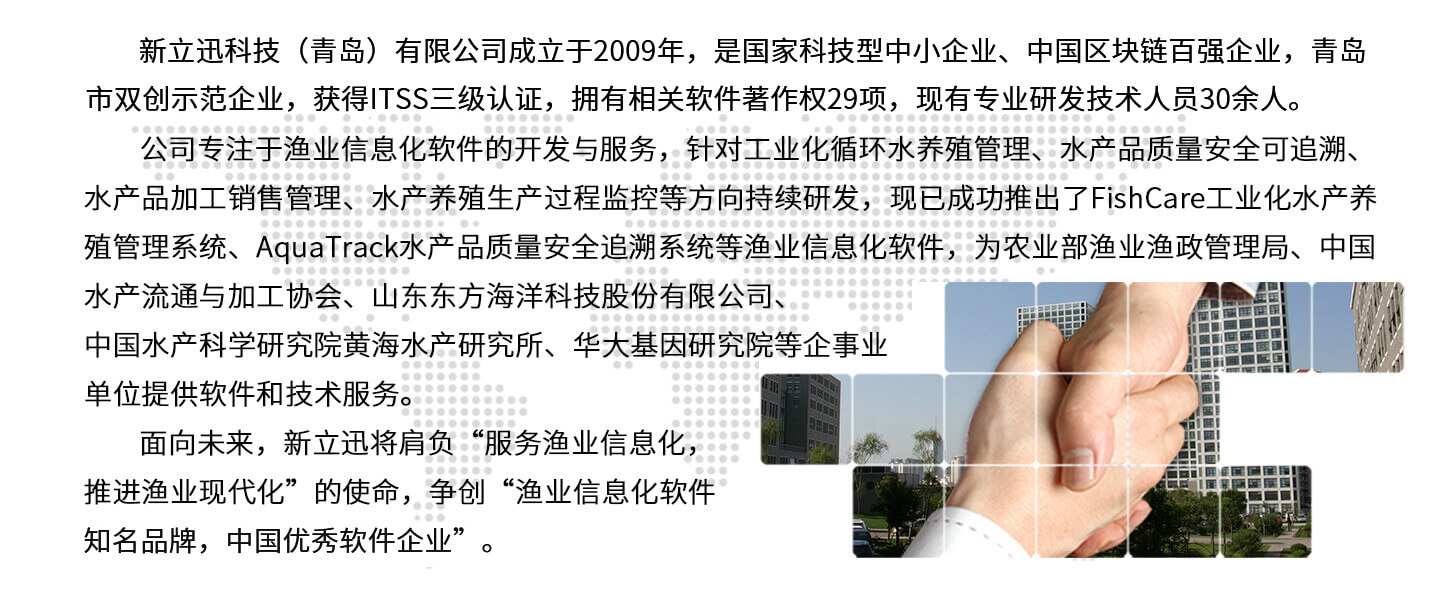 FishCare工業化水產養殖管理系統基于物聯網和云計算技術開發,集成智能傳感器和自動化控制裝備等硬件設施,組建無線傳感器網絡,解決了水產養殖水環境監控的瓶頸,對水產養殖生產全過程實現監控和管理,為水產養殖企業提供定制化開發,提升管理水平,降低生產成本,填補了國內水產養殖企業專業生產管理軟件的空白。